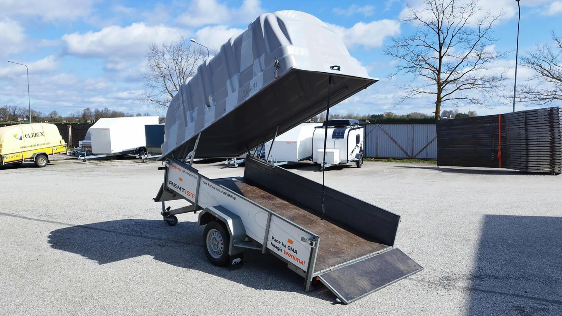 Väga hea kaanega kastihaagis. Keegi ei tea, kas vead vatti või rauda.